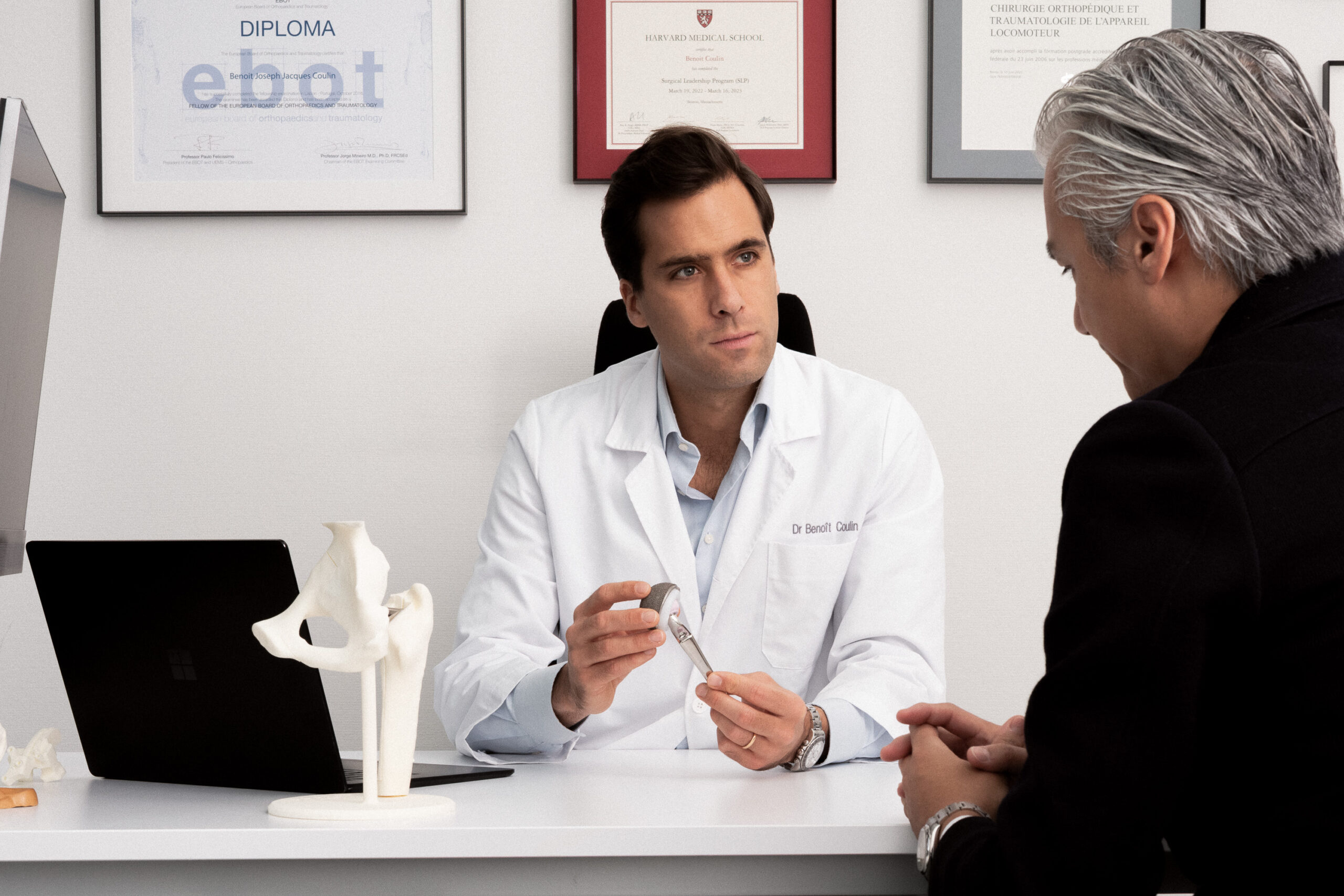 En quête d’excellence, il a ensuite choisi l’un des meilleurs centres de prise en charge de l’arthrose en Europe, travaillant aux côtés du Professeur Lustig. C’est là qu’il a approfondi sa surspécialisation en chirurgie des prothèses du genou et de la hanche. Puis pour perfectionner davantage ses compétences, notamment en chirurgie robotique, il a travaillé à Boston, au Brigham’s and Women Hospital et au Massachusetts General Hospital puis à New York, au prestigieux Hospital for Special Surgery.
